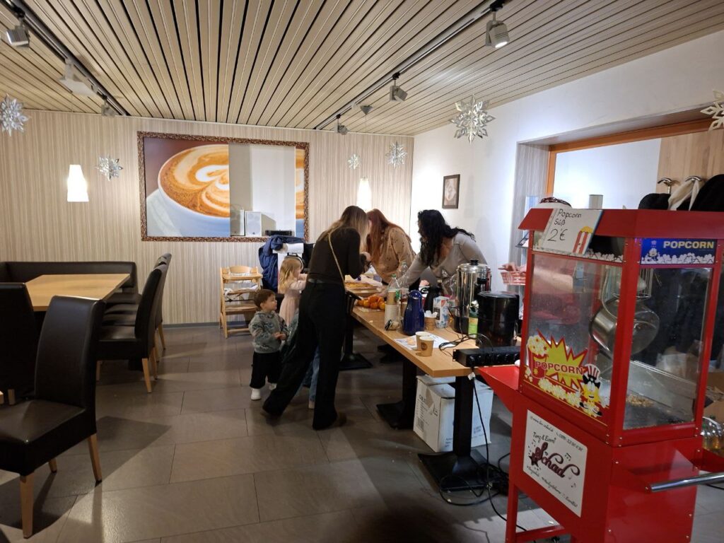 Servus zusammen. Am 6 Dezember war in Heuchelheim im Aktivita eine Kinderweihnachtsfeier. Mit Tanzen, Singen und Spielen. Dies wurde von Diana Schad organisiert. Sie und Ihr Team hatten, wie immer, alles im „Griff“. Beim Eingang gab es Popcorn, Waffeln und Getränke.